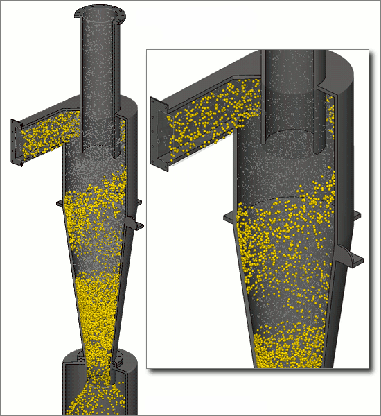 از آنجایی که این ذرات بزرگتر در دنبال کردن حرکت مارپیچی جریان و گرداب با سرعت بالا مشکل دارند، به دیوارههای داخلی برخورد کرده و در پایین سیکلون، محل جمع آوری ذرات درشت، انباشت میشوند که می توان با مکانیزم های مختلفی ذرات را از سیکلون خارج کرد که متداول ترین راه استفاده از روتاری ایرلاک می باشد.