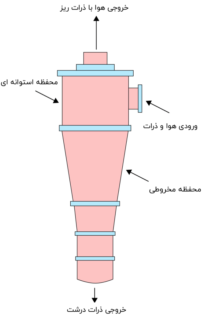 دستگاهی است که در محیط های صنعتی برای جداسازی ذرات جامد از جریان سیال با استفاده از اصل اینرسی به کار میرود. این محصول اغلب به آن غبارگیر گفته می شود، در واقع نوعی تجهیزات برای جمع آوری گرد و غبار بدون استفاده از فیلتر است. از نظر طراحی، سیکلون ها اولین مرحله از یک سیستم جمع آوری غبار چند مرحله ای هستند که به عنوان جداکننده ذرات در سیستم های انتقال هوا عمل می کنند. آنها همچنین برای استفاده در فرآیندهای فیلتراسیون، کاهش اندازه یا در سیستم های گردش مجدد محصول به کار می روند.